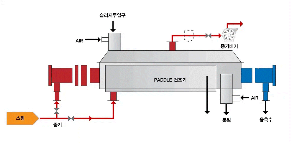 PADDLE DRYER °ÇÁ¶°úÁ¤Àº Á¾·¡ÀÇ ¿Ç³°ÇÁ¶±â¿Í´Â ´Þ¸® °ÇÁ¶¿¡ ÇÊ¿äÇÑ ¿·®ÀÇ Àü·® ¶Ç´Â ´ëºÎºÐÀ» PADDLE Ãà°ú ÀÚÄÏ¿¡ °ø±ÞµÇ´Â ½ºÆÀ¿¡ ÀÇÇÑ Á÷Á¢ Àü¿¿¡ ÀÇÇØ ÁøÇàµÈ´Ù. PADDLE DRYER ³»ÀÇ Áõ¹ß¹°Àº ÃÖÃÊÀÇ °ø±Þ¿Âµµ¿¡¼ Áõ¹ß¹°ÀÇ ºñÁ¡±îÁö ¿¹¿µÈ ÈÄ Áõ¹ßÀÌ ÇöÀúÇÏ°Ô ³ªÅ¸³ª °ÇÁ¶°¡ ÁøÇàµÈ´Ù. °è¼ÓÇÏ¿© ´ëºÎºÐÀÇ Áõ¹ß¹°ÀÌ Áõ¹ßÇÑ ½ÃÁ¡ºÎÅÍ ÇǰÇÁ¶¹°ÀÇ ¿Âµµ°¡ »ó½ÂÇϱ⠽ÃÀÛ, »ç¿ëÇÏ´Â ¿¸ÅüÀÇ ¿Âµµ¿¡ ±ÙÁ¢ÇÏ°Ô µÇ¸é¼ºÎÅÍ ÀÔÀÚ³»ºÎ±îÁö °ÇÁ¶ µÈ´Ù. À̶§, Áõ¹ß¹°ÀÇ ºñÁ¡º¸´Ù ¿¸ÅüÀÇ ¿Âµµ°¡ ³ôÀ» ¼ö·Ï Àü¿ÀÌ ÁÁ°í, ¶Ç ¿Àü´Þ °è¼öµµ Å©´Ù.